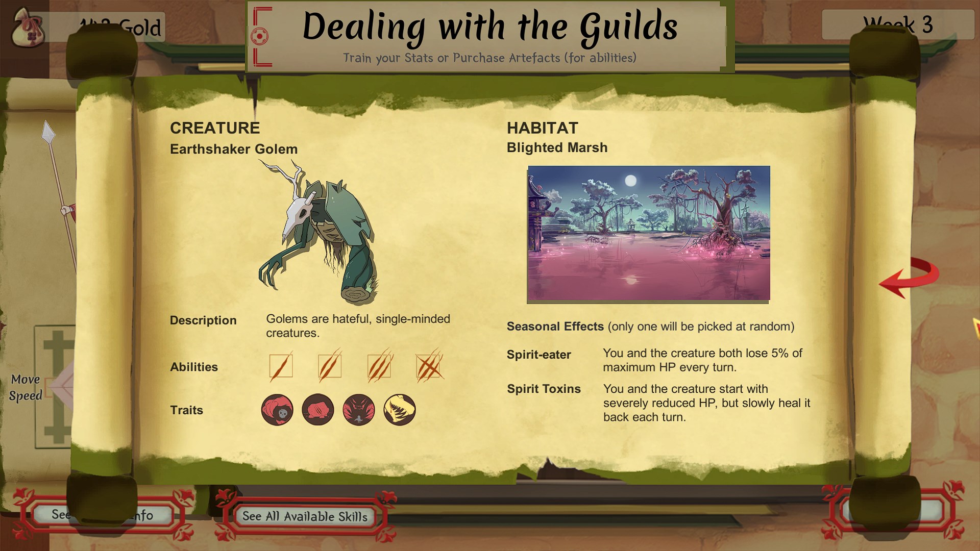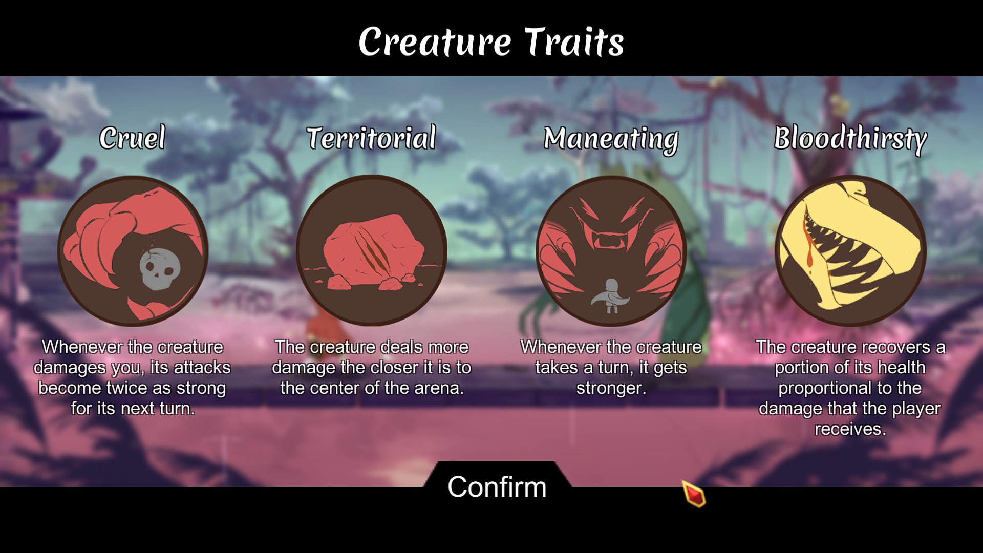 A Hunter’s Tale was done during my internship for SUTD Game Lab through the Game Innovation Programme (GIP). As a group of 5, we were tasked to create a proof-of-concept with the purpose of teaching students the idea of managing risk versus reward. As such, we developed a game with that very core theme. A Hunter’s tale puts players through increasing challenging hunts against mythical beings, every hunt allows them to purchase equipments from vendors which makes them stronger over time, as so will the monsters. Players has to undergo a set of seven unique trials across a span of three hunts, “trials” being modifiers which increases the difficulty of the hunt in numerous ways (like adding hazards to the level or given monsters an extra ability). Players can choose to undergo a particular trial in any of their hunts, but any trials that are left at the end will ultimately have to be taken at the final hunt; which teaches players to manage risk.